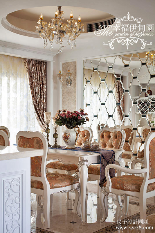 设计理念 幸福就像透明杯中的极品香茗,气味芬香,不分季节与时间,品尝后那股沁人心脾的温润感,总是恒古不变。说到象征恒古不变的,第一时间都会想到一个广告词“钻石恒久远,一颗永留存”。业主夫妇均为珠宝行业**者,女主人笑容常挂,雷厉风行;男主人沉稳严谨,注重落实;从这对夫妇身上我们感受到的总是幸福的喜悦。同时因为职业关系,他们在对细节的雕琢美感及触觉敏锐度来得比其他人都迅速些,因此在设计过程中与业主的沟通非常顺利,这一对将“刚柔并济”完美诠释的夫妇,使一屋的幸福感满溢。
