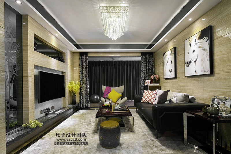 项目地址:深圳市后海理想雅园 设计面积:125㎡ 设计风格:后现代 项目类型:平层