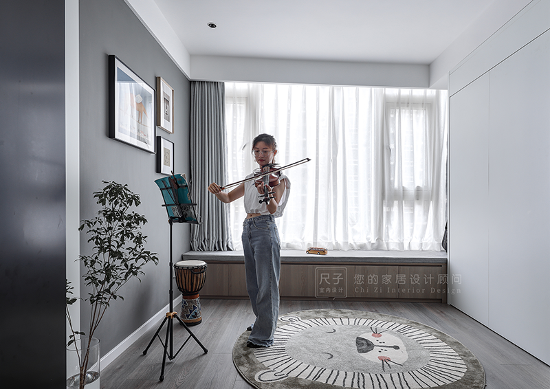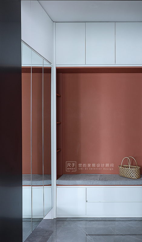 入户右侧砌墙做多功能房,借助玻璃推拉门增加通透性以及采光