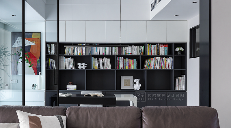 从客厅隔出书房,以玻璃推拉门做隔,可开放可封闭