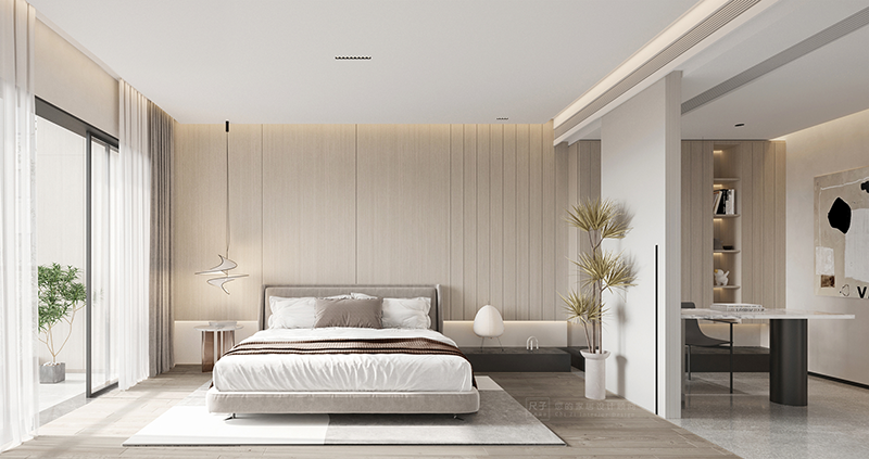 不掺杂任何跳脱的色彩,不采用所有繁杂的线条装饰。意图用简单纯粹的设计手法打造实用性与美观性兼具,通透明亮,温暖宜居的舒适空间。
