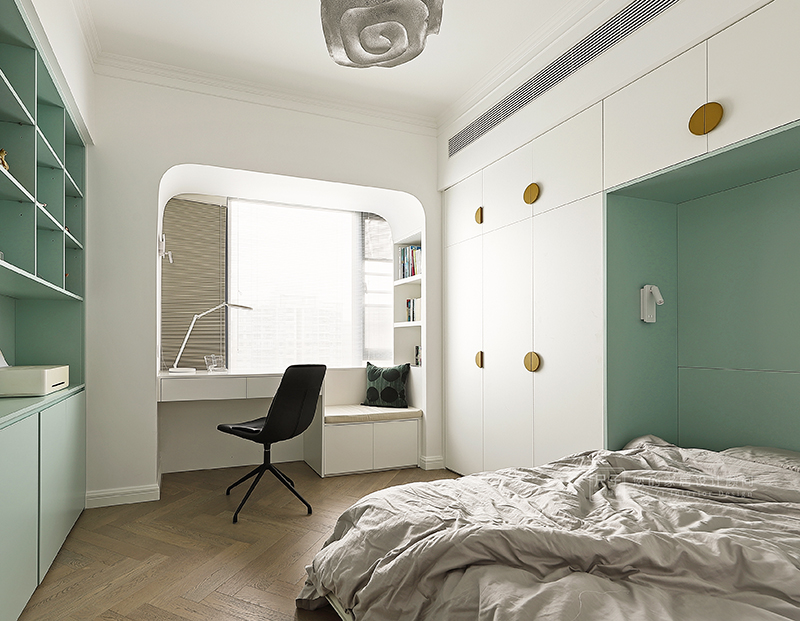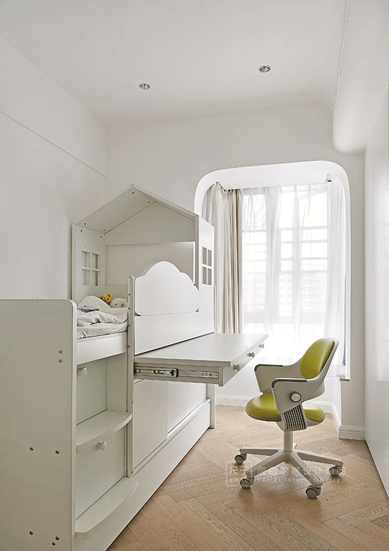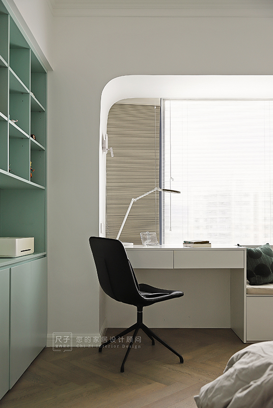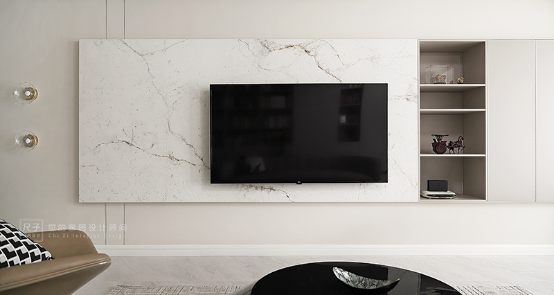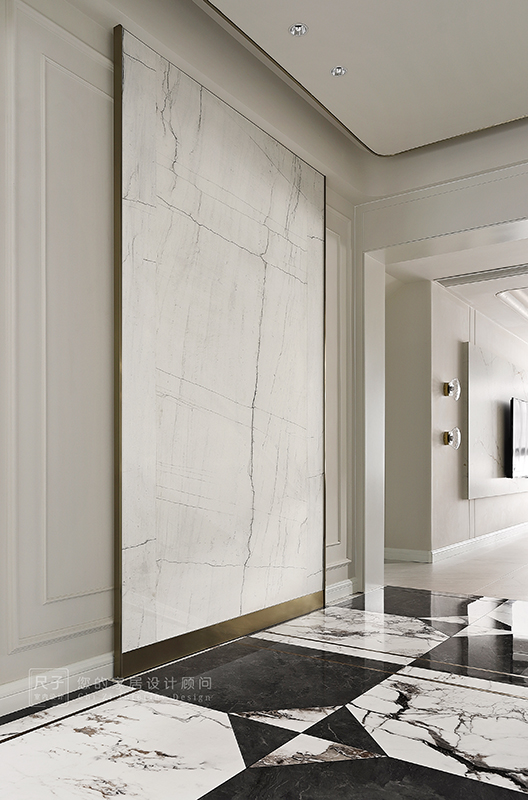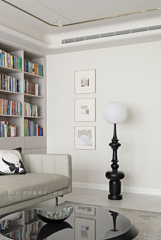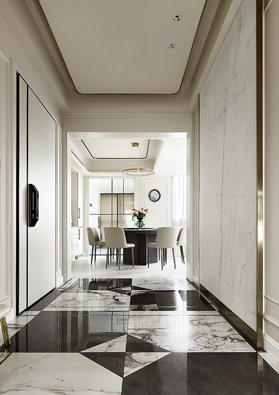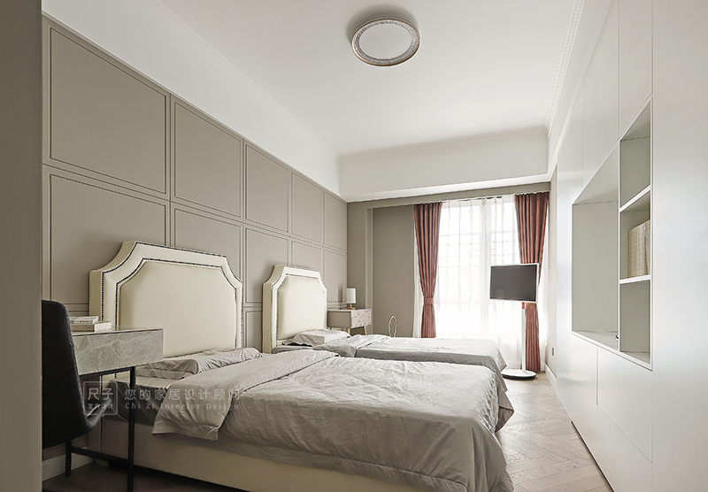 以心筑家,把握每一寸美的元素,在奶油色的基调中,法式线条元素结合,呈现华丽且温和的氛围。