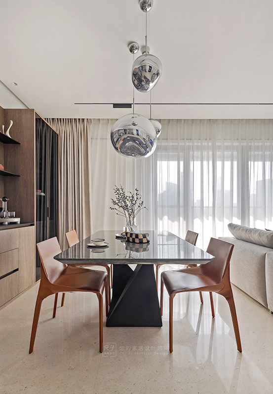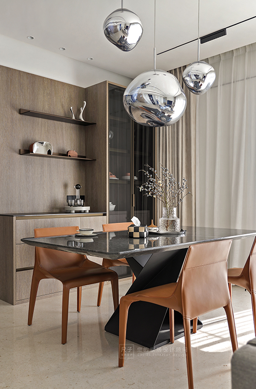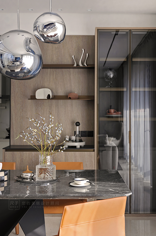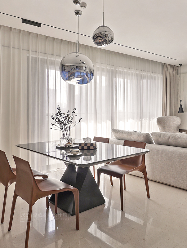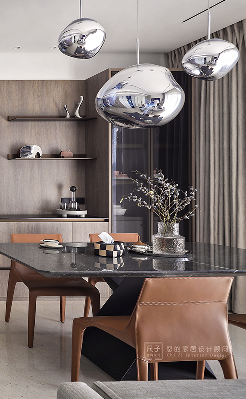 吊饰镜面银的材质散发的雅致与艺术气息,质感十足,将不拘传统的烟火气息注入摩登生活,增加时髦感。