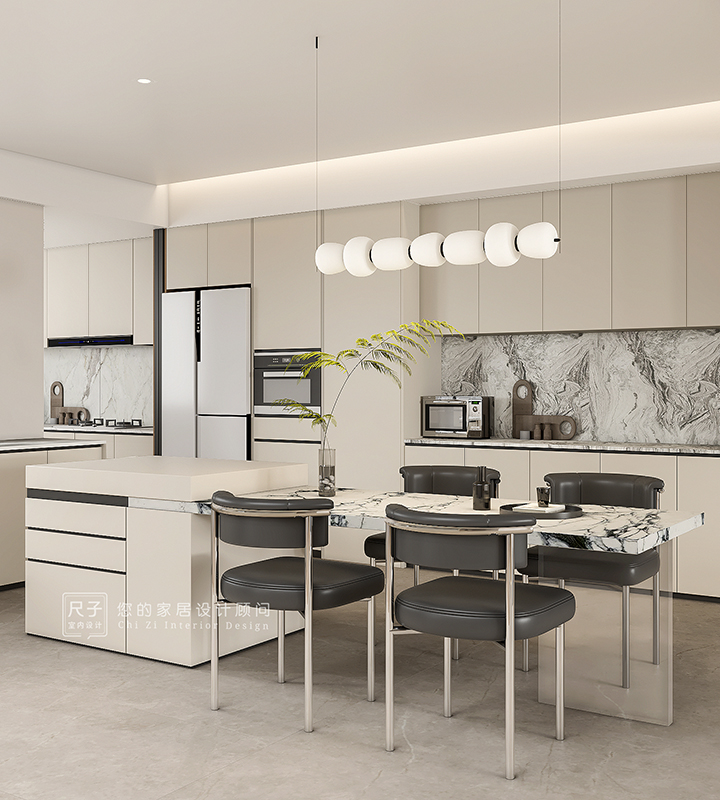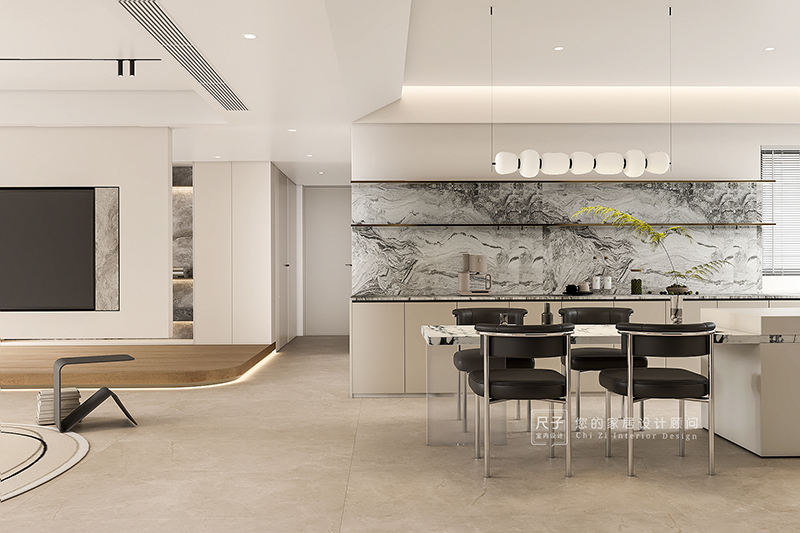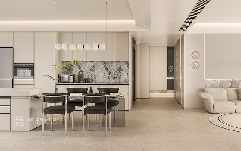 这个家科学的动线,给予人生活体验舒适度和功能便捷性,打造整体的使用价值和品质,时下潮流的奶油风,搭配大理石的气质,让室内风格得到更好的发挥。