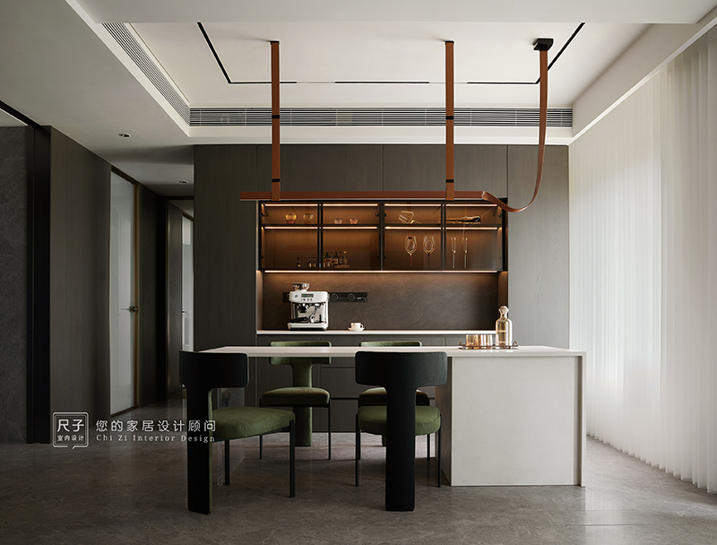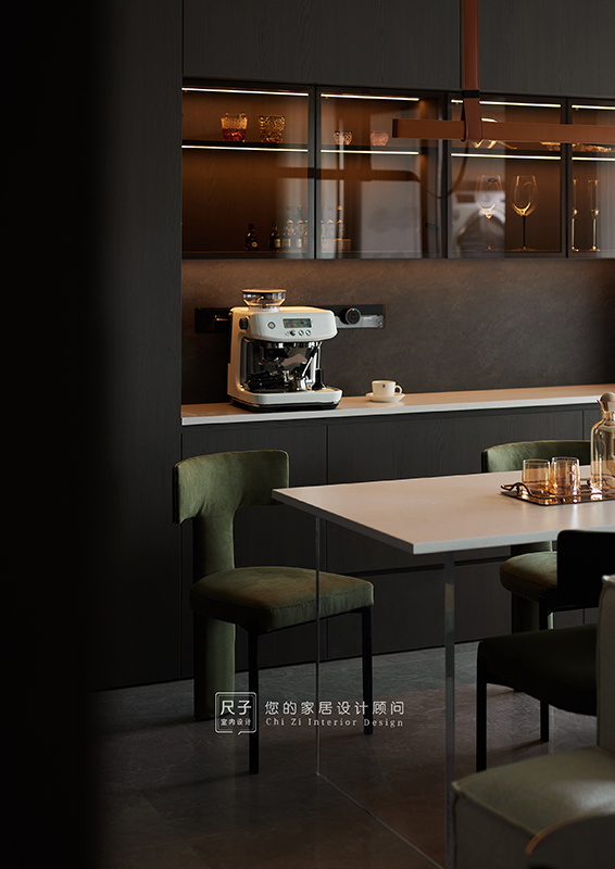 这里,就像是一座高品质的曼哈顿公寓,每一处细节都彰显着生活的品味与格调。意大利经典元素的线条与质感,与柔软的灯光交织,营造出一种温馨而深邃的氛围,在这样的环境下,让人感受到一种沉静的力量,仿佛整个世界都在这个深色调的空间中慢了下来。