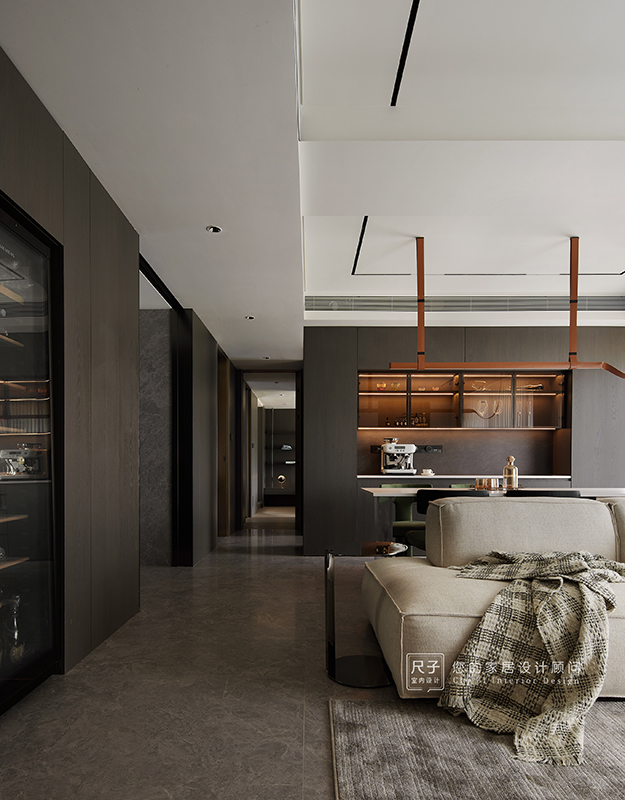 项目地址:深圳·润玺二期 设计面积:120㎡ 设计风格:暗黑极简风 项目类型:平层