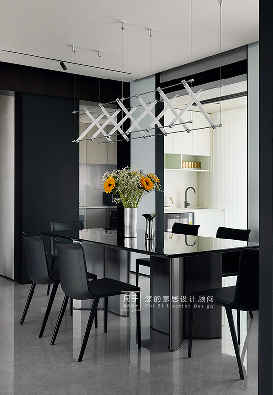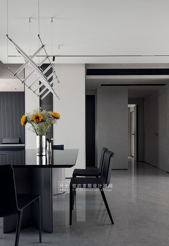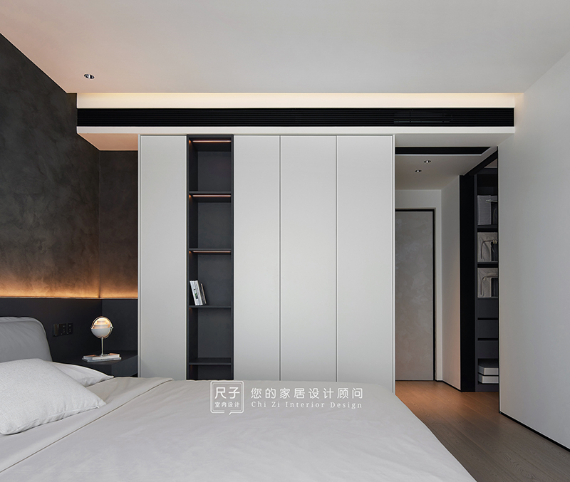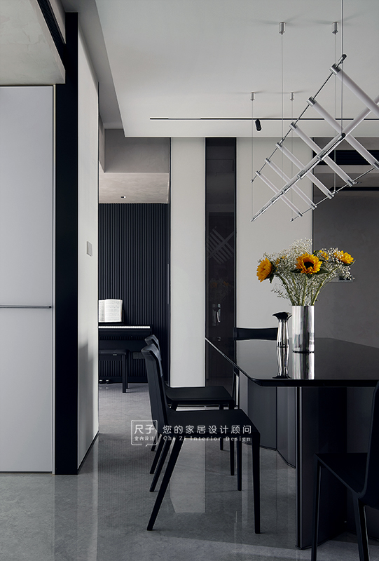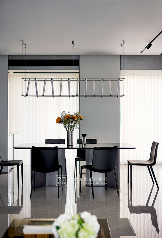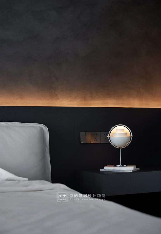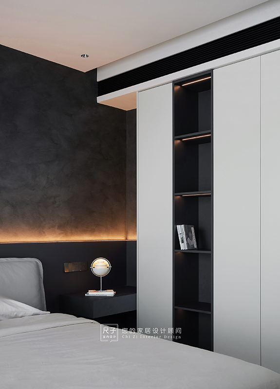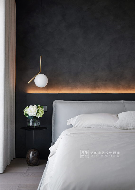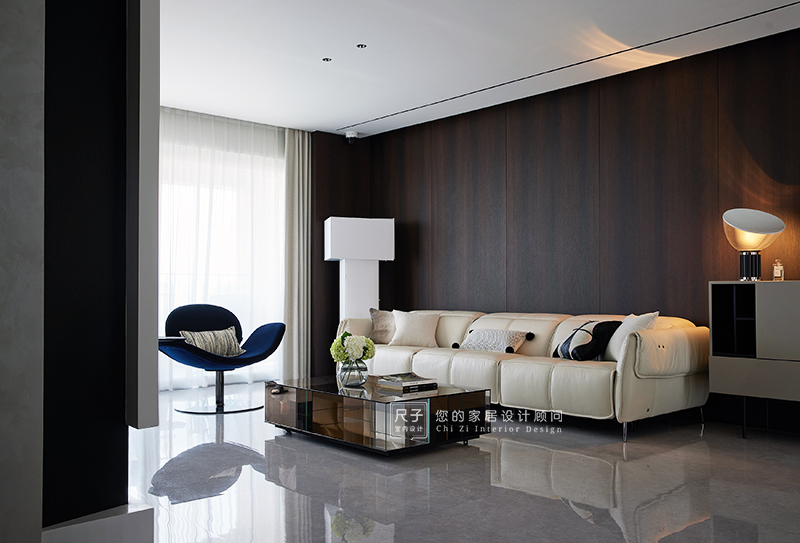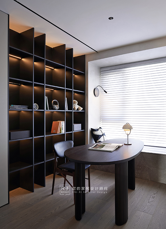 整个家环环相扣的布局,沙发背景深色的木饰面,电视背景浅色的涂料,深浅交融之间,形成一种整体又干练的质感。