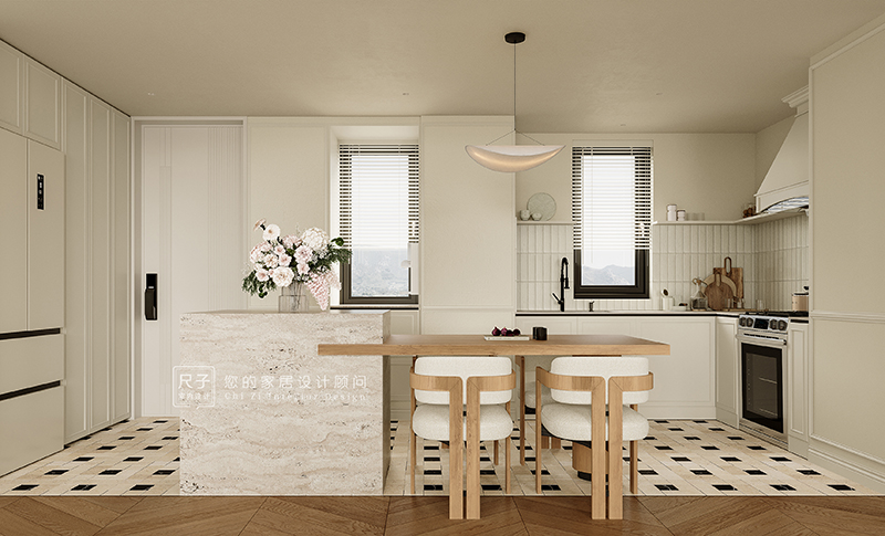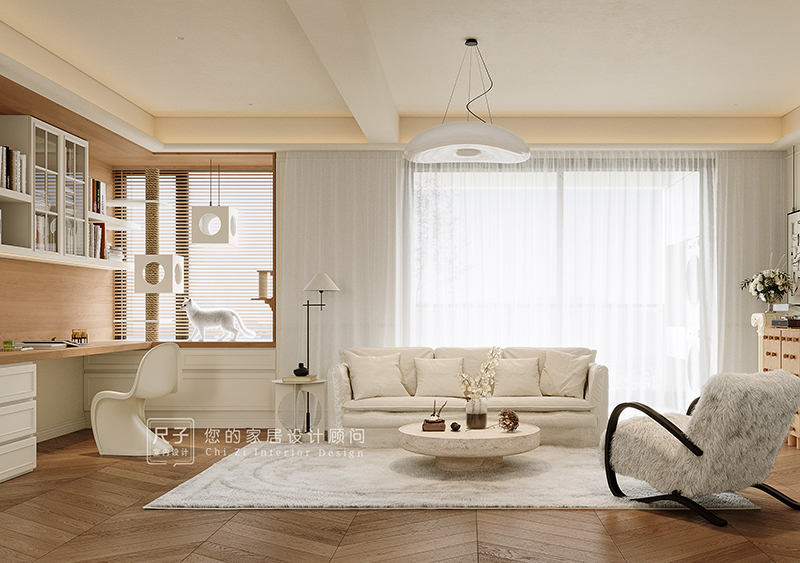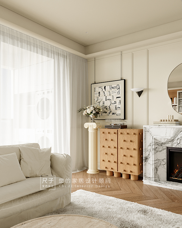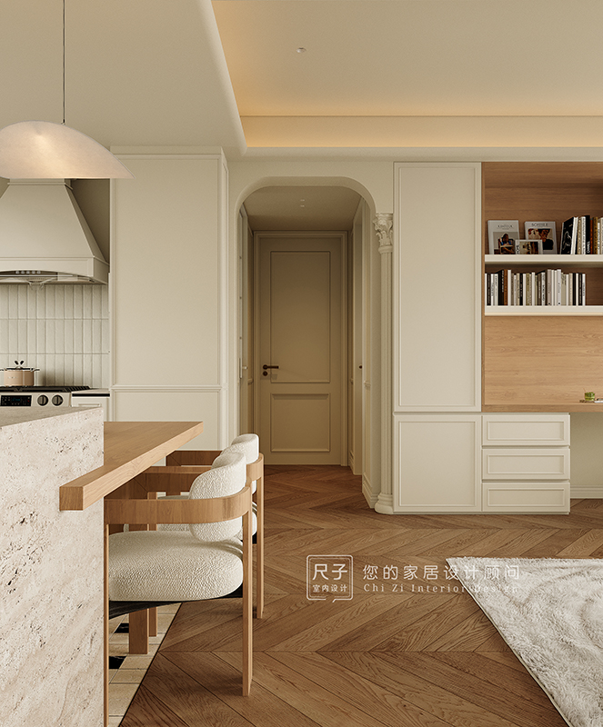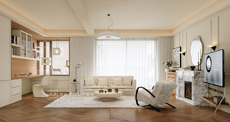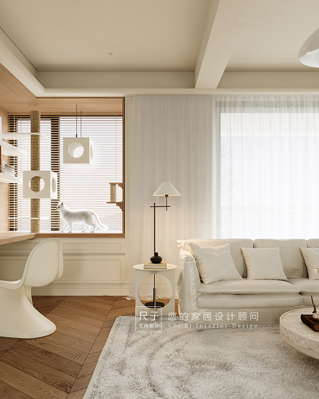 这里不仅是栖身之所,更是一场关于美学与情感的诗意叙事,原本精装房在砸掉一堵墙后,主空间从竖厅变成了横厅,视觉上一下子开阔了好几倍,互动式空间设计的小心思,把烟火气和温馨浪漫感结合在了一起。从壁炉跃动的暖光,到猫咪穿梭的灵动身影;从餐厨区的烟火浪漫到私密卧室的静谧梦境,每个角落都藏着触动心弦的故事,让家变成了既有美学感,又满是情感的诗意小世界。