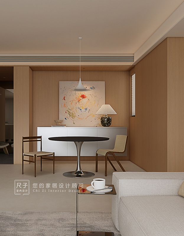 温柔的原木风搭配艺术涂料,带着点细细的肌理感,设计师在空间中增加了提气质的拉丝金属和玻璃的材质质感,多了一份时尚精致。整个一体化的布局,一眼望过去特别开阔,没有繁复的装饰喧宾夺主,每一寸空间都透着着自然的呼吸感,藏在细节里的诗意,让日常的每一个角落,都成为值得驻足品味的艺术画卷。