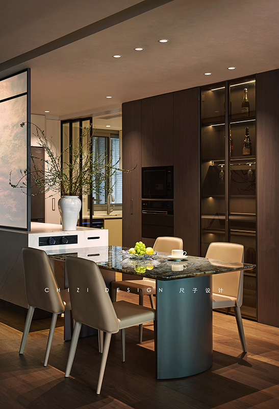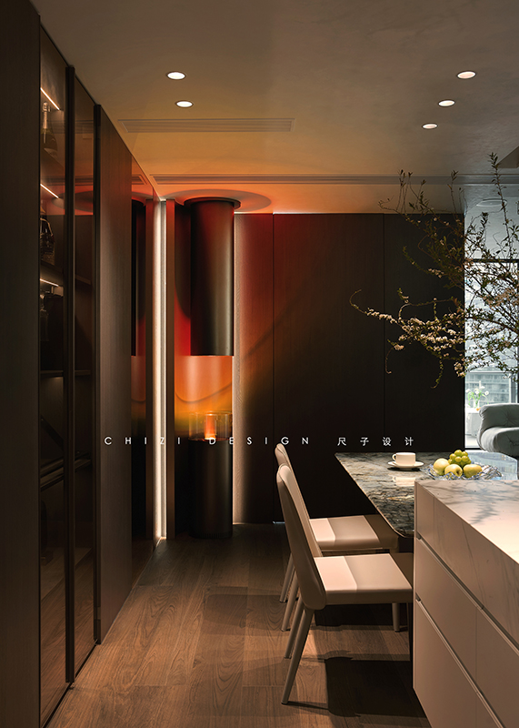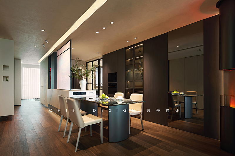 这个家摒弃千篇一律的统一色调,以浅色区与深色区的强烈对比为设计巧思,为热衷社交的业主,量身打造一方兼具高级质感与互动属性的现代居所。