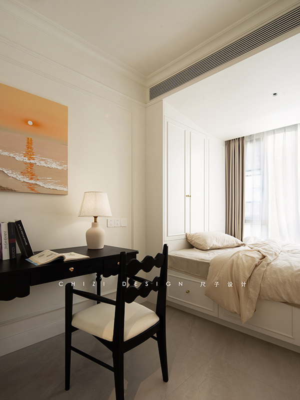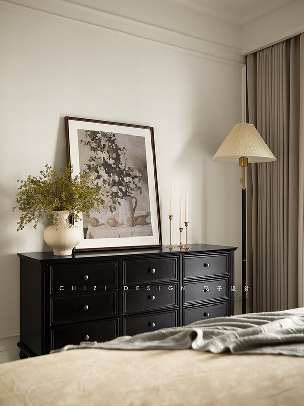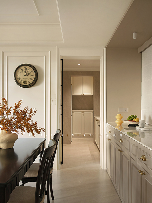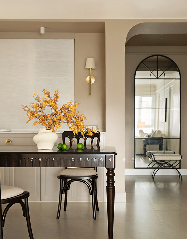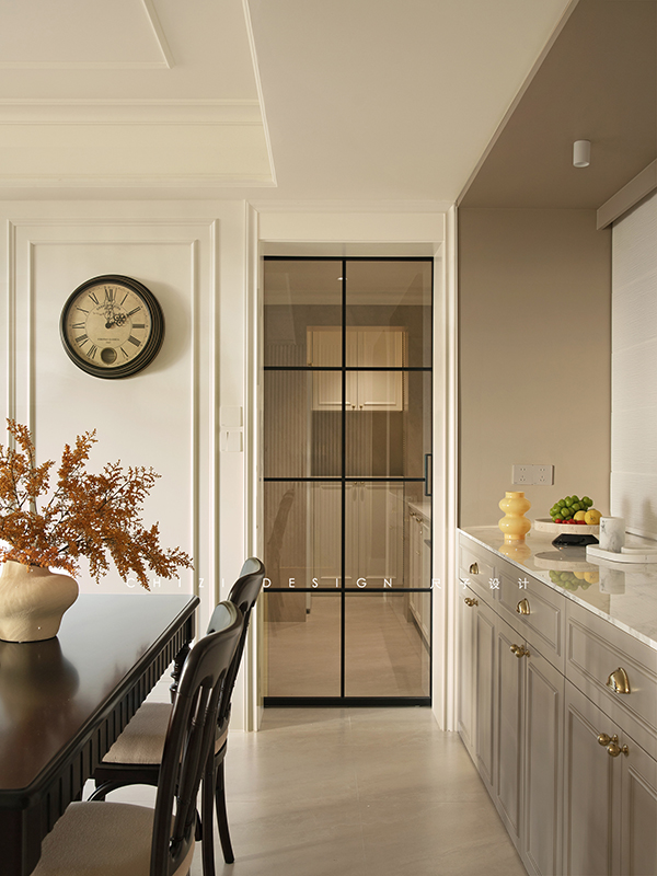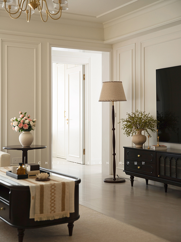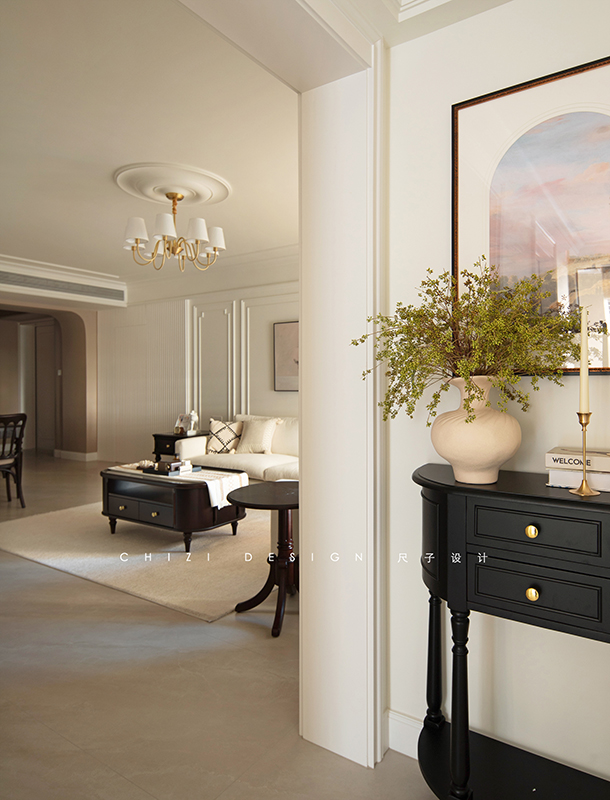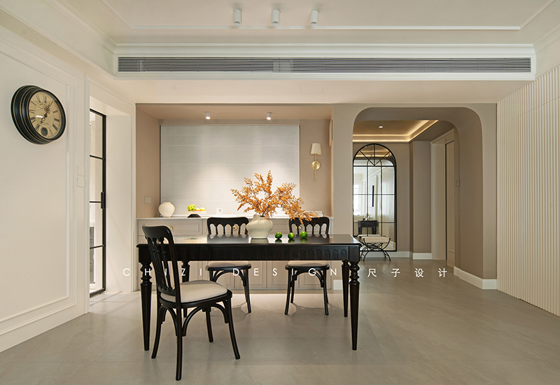 这个家因原始房间朝向受限,采光稍有不足,设计师以浅调破局采光困境,借色彩张力驱散昏暗,用黑白经典演绎赫本风法式浪漫,既让空间通透明亮,又演绎出优雅复古、浪漫克制的法式格调,让每一处角落都浸在柔和光影与法式风情里。