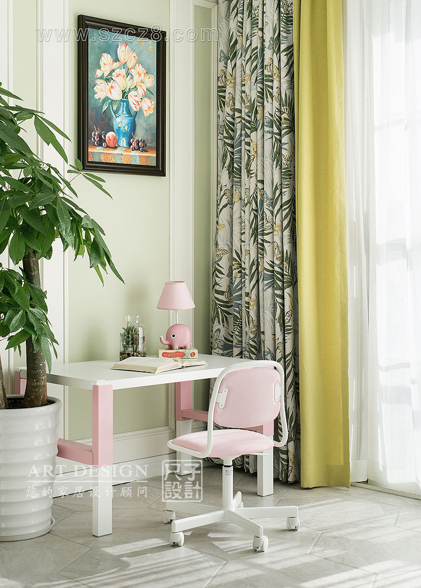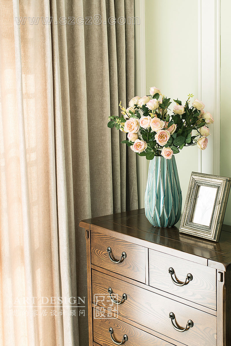 沟通时,业主C小姐明确表达了自己的观点,“我想要的是一个窗明几净,推开门就能感受到明媚愉悦的家”;于是我们以业主喜爱的美式风格为设计主题,浅绿为主色调,为业主打造清新自然,又不失休闲浪漫的家。