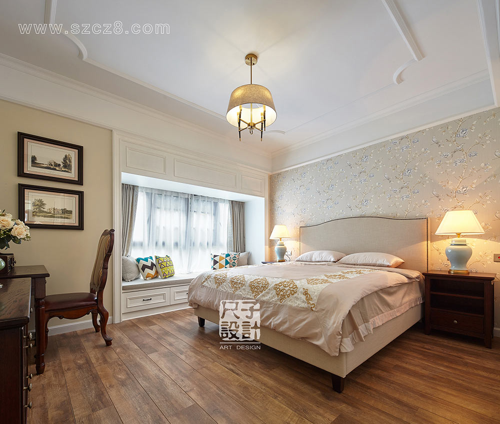 项目地址:深圳市星河盛世 设计面积:150㎡ 设计风格:美式 项目类型:平层 合作商家:美森耐房门、大师涂料、木百盛实木定制、爱室丽家具、加美布艺