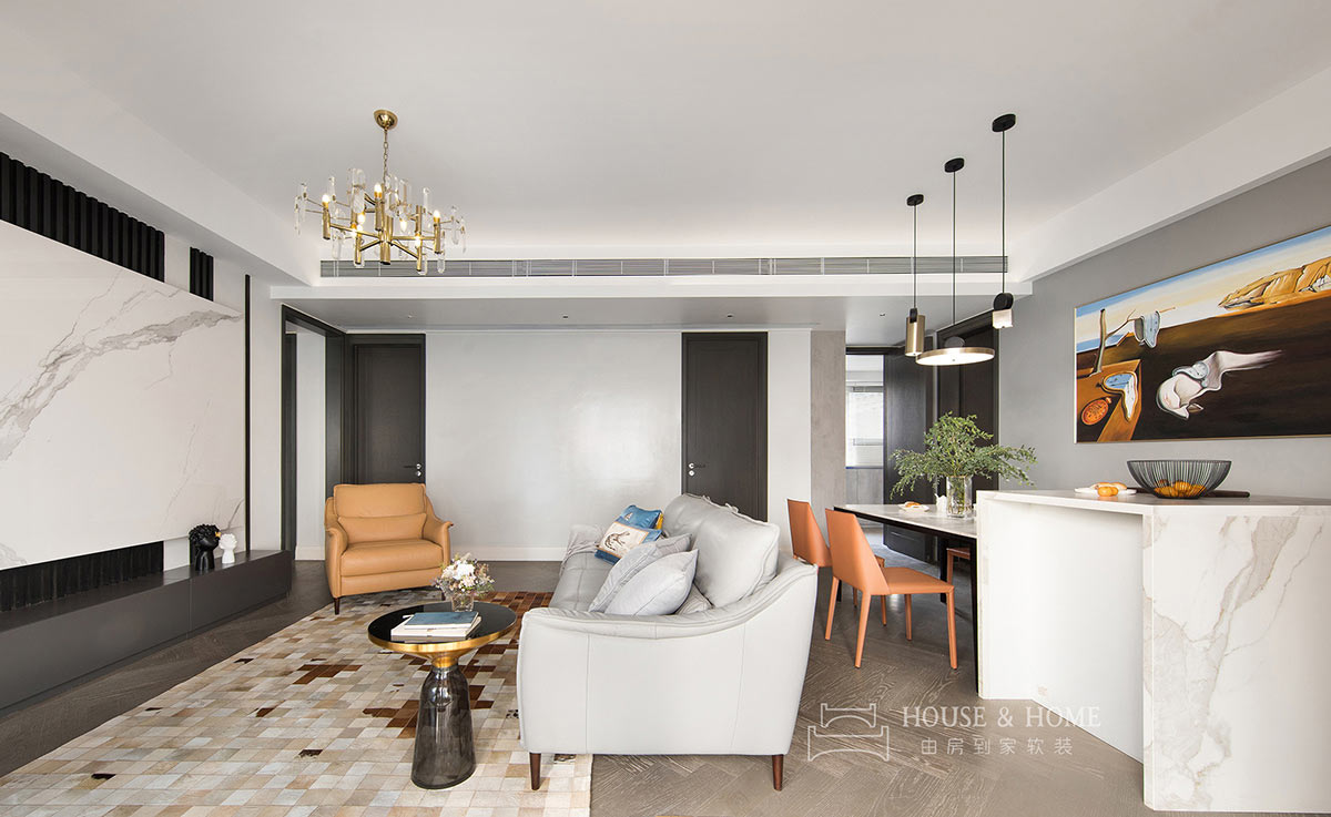 沟通时H小姐与P先生谈到喜欢达利的画作,恰好设计师不久前去看了达利的画展,双方一拍即合,以这幅《永恒的时间》作为这个家的设计主线。