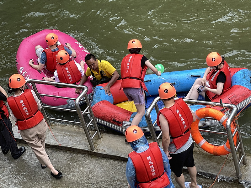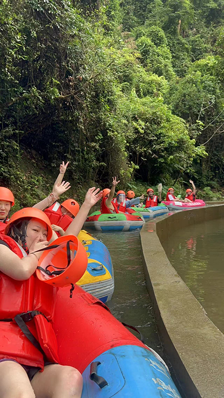 尖叫与笑声交织在一起,感受着激流带来的速度与激情。