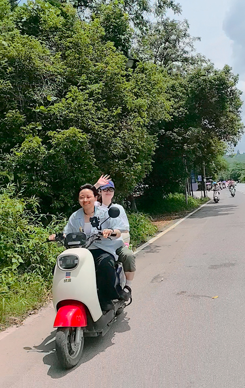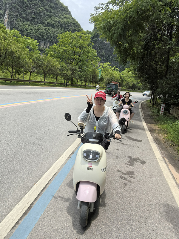 到了阳朔,怎么能不体验一把十里画廊骑行!我们骑着电动车,穿梭在如画的风景里。