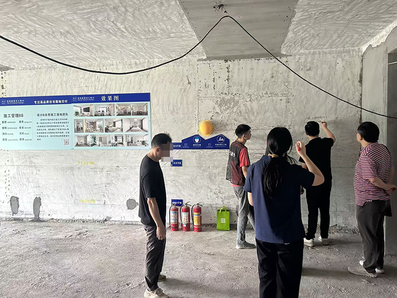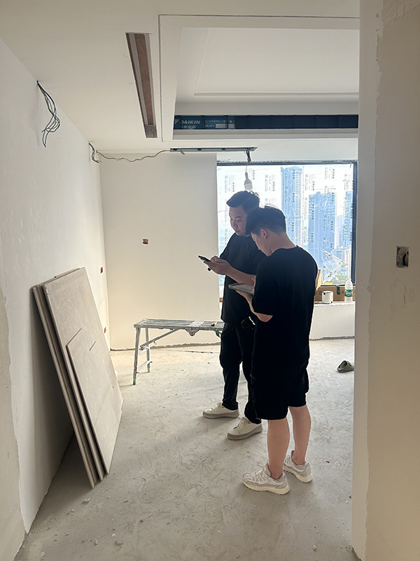 工地施工的日子,我们都是专属 “驻场监工”,每天扎在灰尘里,活成了工地的 “移动摄像头”。施工节奏步步跟进,和师傅们反复确认工艺细节,从水电走线的横平竖直,到墙面基层的平整打磨,容不得半点马虎,当场沟通、即时解决。